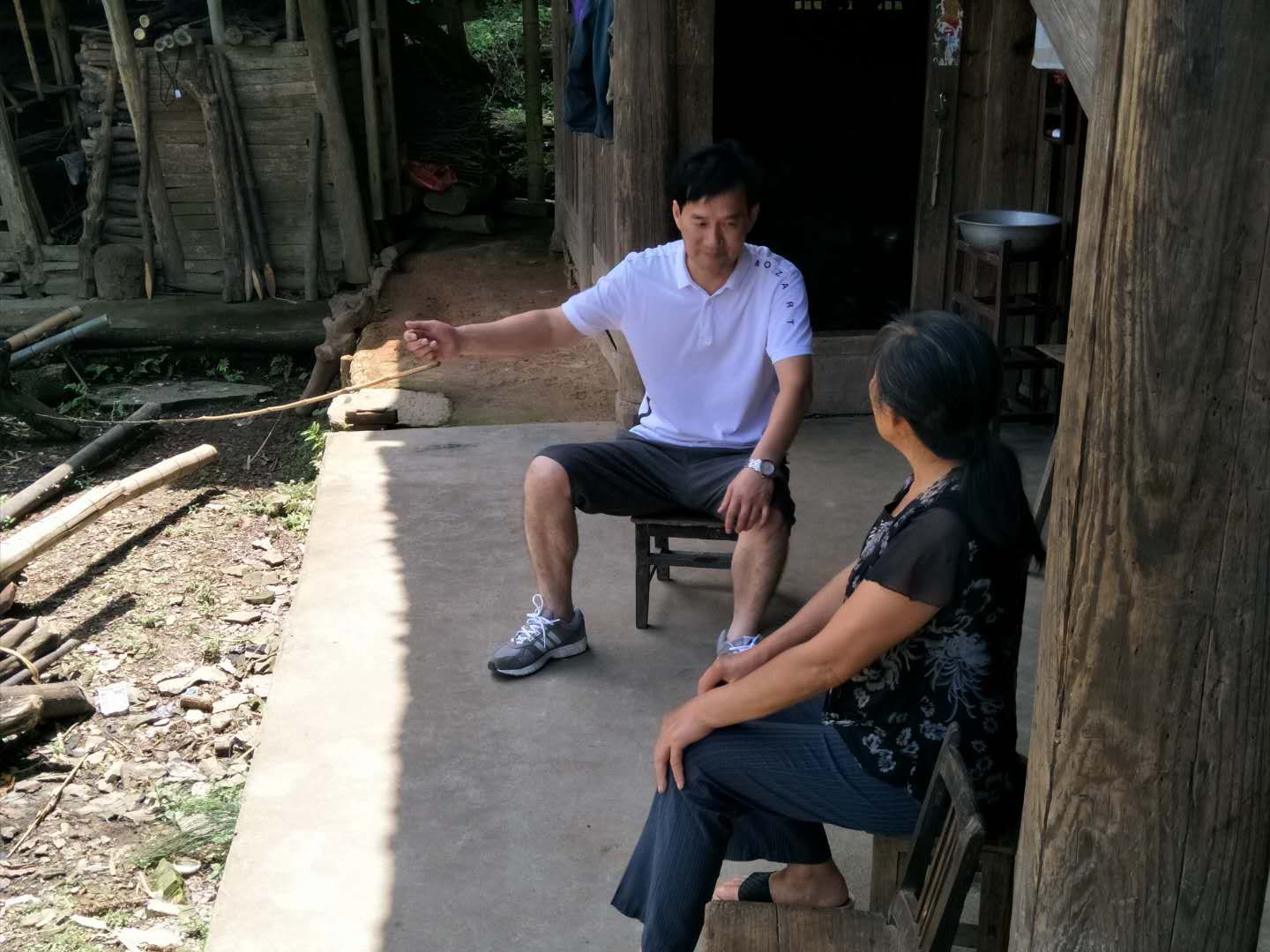 之后,郭白泉、孙智坤和村干部一道顶着炎炎烈日,翻山越岭,先后到王永固、黄建华家走访并送去慰问品。走亲戚、问农事、话家常,通过与王永固、黄建华的亲切交谈,全面了解上半年两家生产生活情况。在得知王永固家上半年茶园收入很少,才1万多元,郭白泉建议适当做点家庭养殖比如土猪土鸡,年底党支部再以消费扶贫方式予以收购,王永固夫妇十分高兴也十分感激地接受了这一提议,扶贫队现场表态给以相应的启动资金。在黄建华家,就村级公路入户与他们进行了交流沟通,目前山顶住户太少,未达到修路入户的基本条件,但村委干部和驻村扶贫队队员表示,会努力争取纳入计划,一旦条件具备或有机会,会尽快立项启动项目建设。