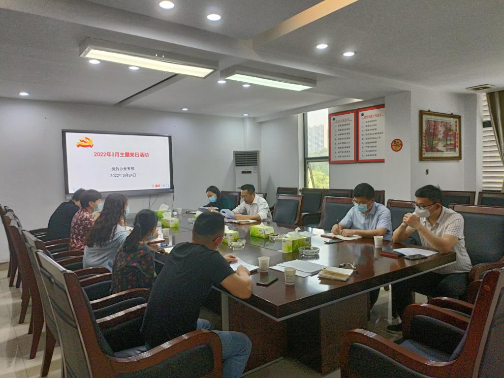 2022年3月24日,党政办公室全体人员在一办公楼二会议室组织开展了3月主题党日活动,支部党日活动由支部书记龚彬主持,党政办公室全体党员参加。